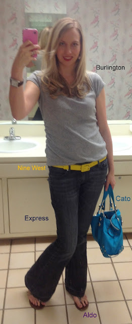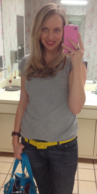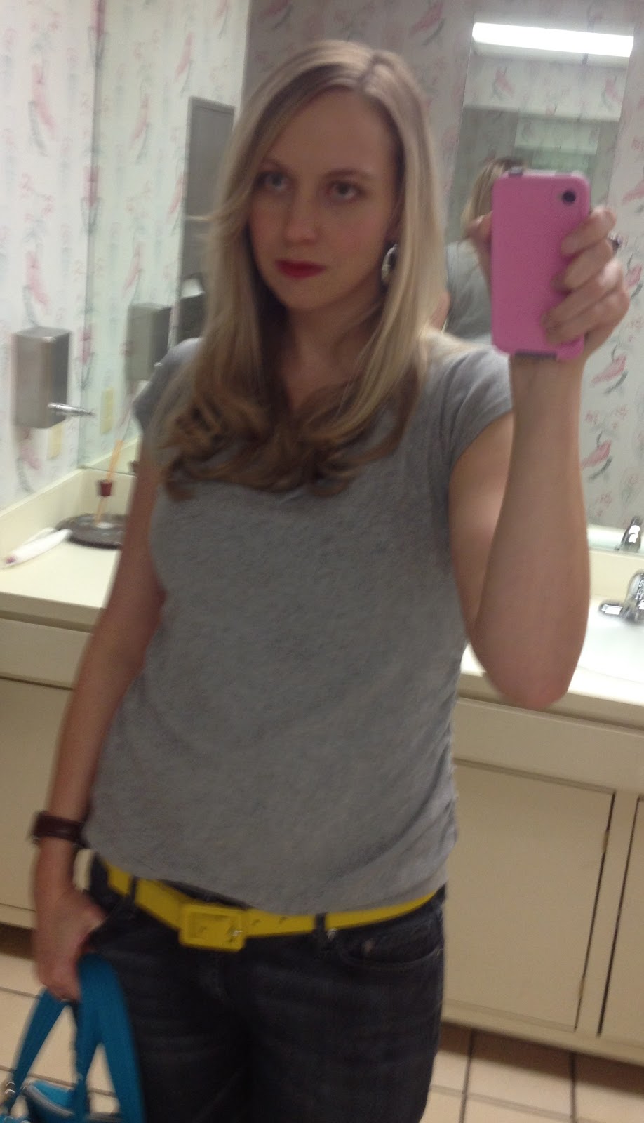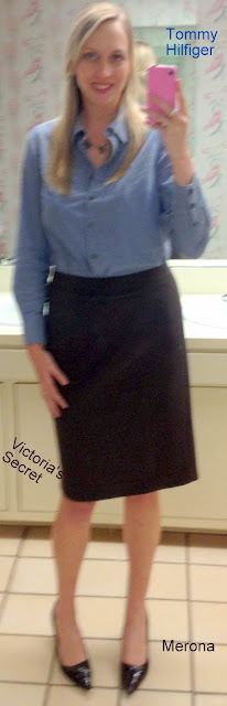 Unfortunately, I snoozed through my alarm, and am absolutely exhausted today, and the thought of wearing a pencil skirt and fitted shirt just killed me. Killed me, I say! Not to mention that I hadn't ironed said fitted shirt. And the skirt requires a slip. Plus there's something about about a cute outfit that makes me feel like my mood has to live up to it...and it probably wasn't going to manage that today.