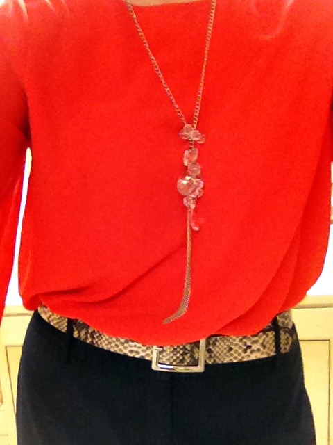 I can also dress it up: belted with a pair of khaki or black pants, knotted over a maxi dress, or like I did today - tucked into a pencil skirt with heels.
