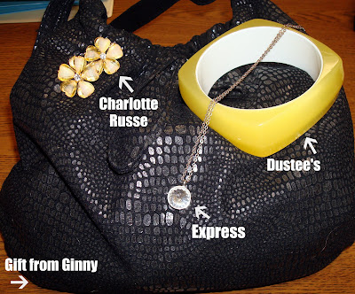 I bought this wide black belt years ago at a Ross in Lubbock, Texas. Imagine the time when wide belts were just really coming back into style, and I was undecided about the "trend". I didn't want to invest in a pricier wide black belt--that was really when you still had to search for them, instead of finding them at every store at the mall. I saw this one at Ross for $10, and thought I'd buy it. I've probably worn it 4 times since then. I don't know why I haven't invested in a nicer one by now...obviously what I once thought was a passing fancy is here to stay for awhile, competing equally for the waistline with skinny belts and grosgaine ribbons!